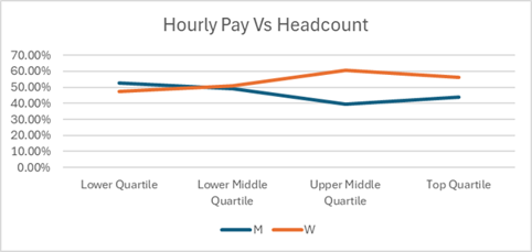 Although the 2025 reporting year has seen a further small decrease in the male/female mean proportions (54.3% compared to 53.7%) we continue to have more women in employment than men at BCLT. Both our mean and median pay gaps remain negative, demonstrating that within BCLT, women (on average) continue to earn more than males when speaking about hourly pay. This may be explained by the fact that males make up the majority of employees within the Lower Quartile (the lowest-paid employee group). This indicates that lower-paid roles within BCLT are more commonly held by males, which reduces the overall median. This position is consistent with the previous reporting year, with both the median and mean remaining in favour of females.
